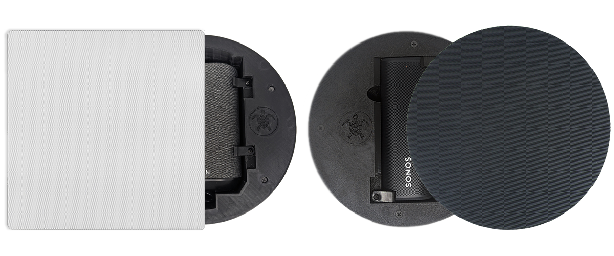 Design for ceiling use, these can also work in some walls as well. Works with Sonos ONE, Play:1, Era 100... as well as Denon Home, and now even Sonos ROAM. And we offer multiple grill shapes and colors to suite your needs.